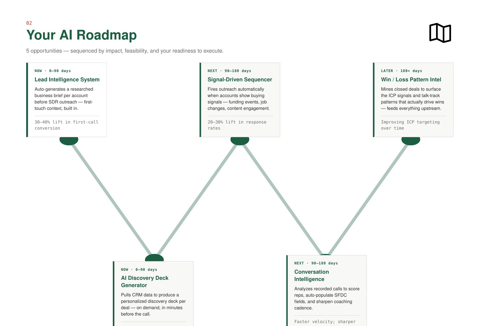 Receive a specific, actionable roadmap: your opportunity map, recommended first move, financial case, and a deep-dive Spotlight, delivered to your inbox.